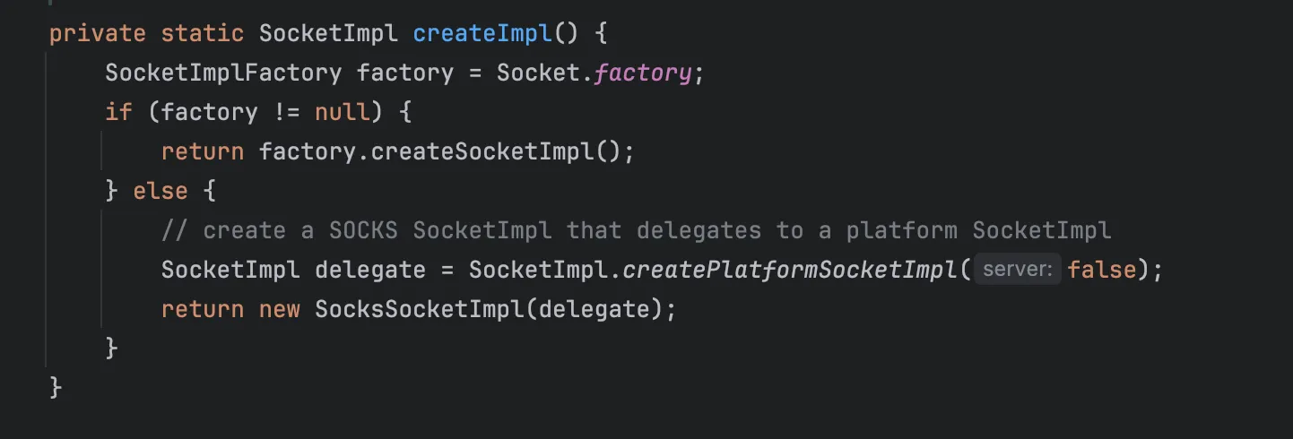 주석을 보면 Impl class에서 실질적 동작을 처리하고 있다고 하는데, SocketImpl이 특정 인터페이스를 implements 해서 Impl이라고 네이밍 한 것은 아니고 브릿지(Bridge) 디자인 패턴의 한 형태로 구현된 것입니다.