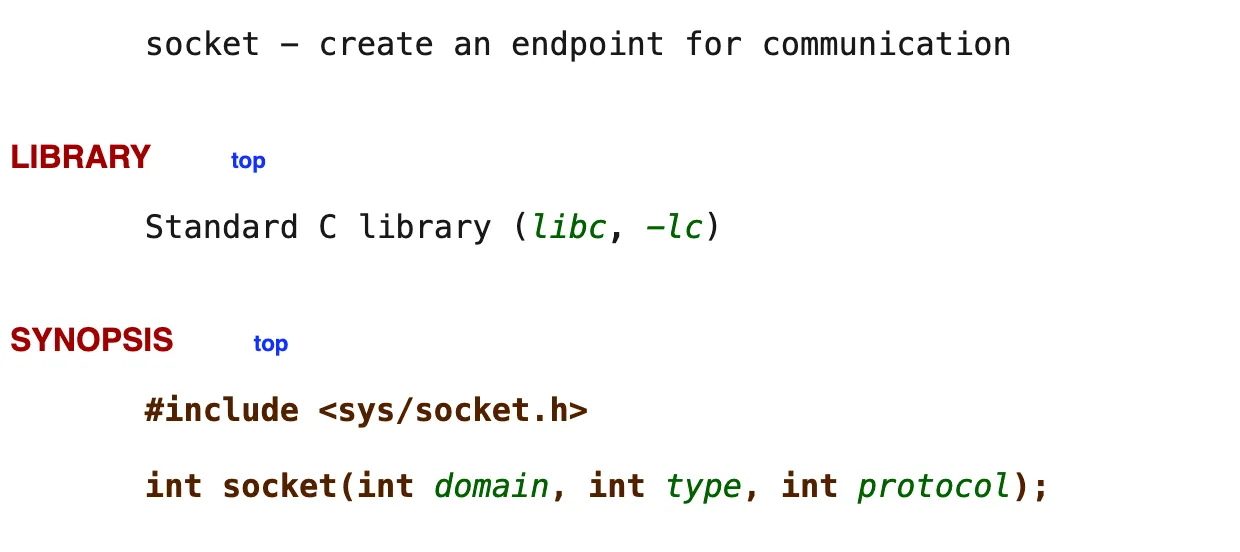 domain을 통해 3계층 주소 패밀리를 무엇을 쓸 건 지(IPv4 / IPv6), type으로 무엇을 주고 받을건지 (바이트 스트림, 데이터그램, raw), protocol을 통해 프로토콜 (TCP/UDP/RawIP)을 설정할 수 있습니다.