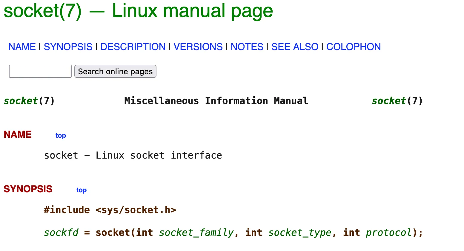 int socket(int domain, int type, int protocol); 을 호출하면 해당 엔드포인트에 대한 파일 디스크립터를 return 합니다. 소켓 API의 가장 특이한 점은 프로세스간 통신 == 소켓 을 파일 디스크립터로 추상화한 것입니다. 파일을 다룰 때 사용하던 open , read, write, close 등을 소켓 통신에서도 그대로 활용할 수 있게하여 애플리케이션 입장에서는 단지 디스크립터에 바이트 스트림을 쓰는 동작만 수행하면 됩니다.