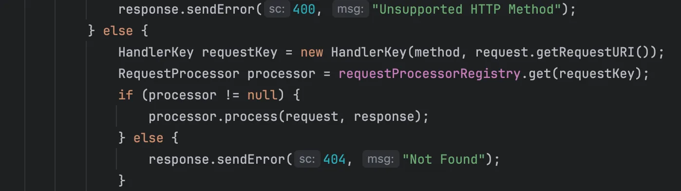 method와 uri를 조합해 Key를 만들었습니다. 적절한 처리용 클래스로 라우팅합니다.