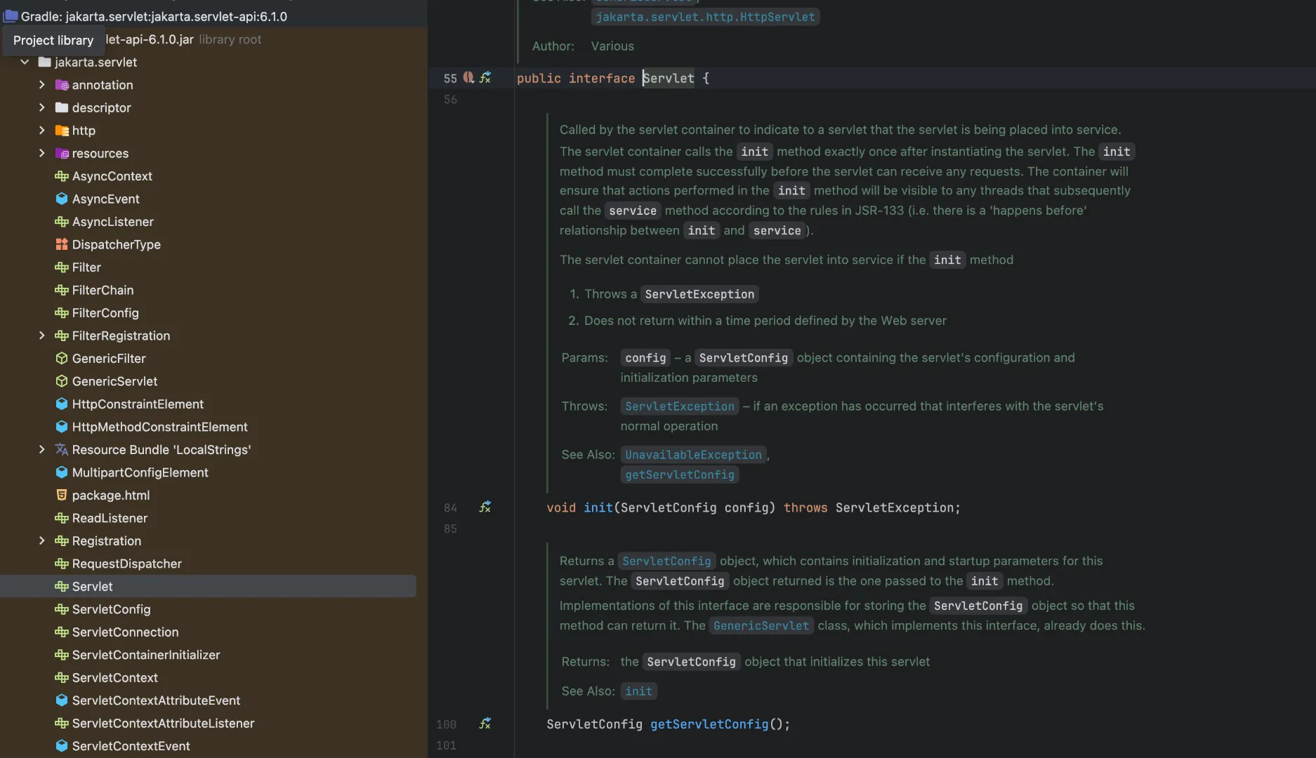 자주 오해하는데 중요한 점은, 서블릿은 바로 명세(specification)라는 것입니다. 바로 눈으로 보겠습니다.