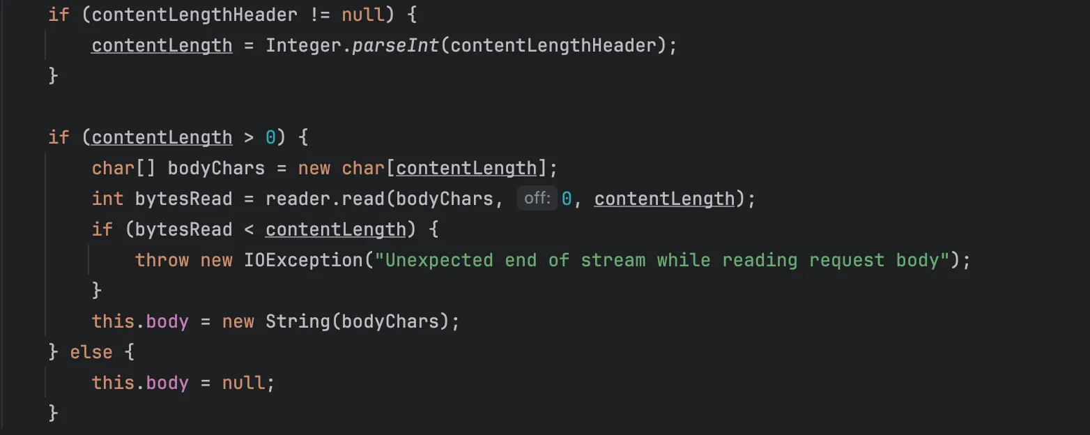 body는 content-length 헤더가 존재할 때 그 사이즈 만큼만 읽도록 구현해주었습니다.