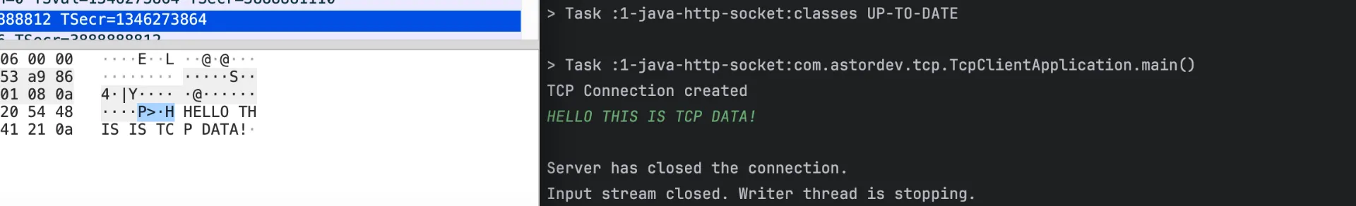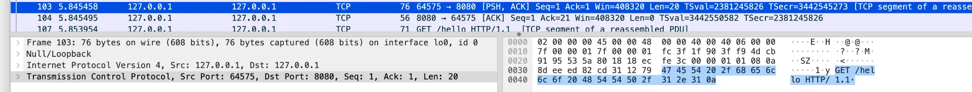 지난 글에서 알아봤 듯 TCP는 “요청”이나 “응답” 과도 같은 단위가 존재하지 않습니다. 제가만든 클라이언트 애플리케이션은 Enter 단위로 TCP 패킷을 쓰도록 만들어놨는데, 이에 따라 총 3줄이었던 데이터는 3개의 패킷으로 나뉘어 전송되었습니다.