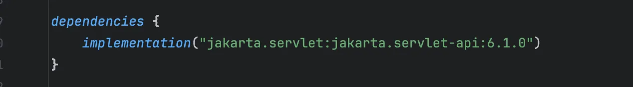 실질적인 Servlet Interface의 구현체는 각 컨테이너 의존성을 추가해야 확인할 수 있습니다.