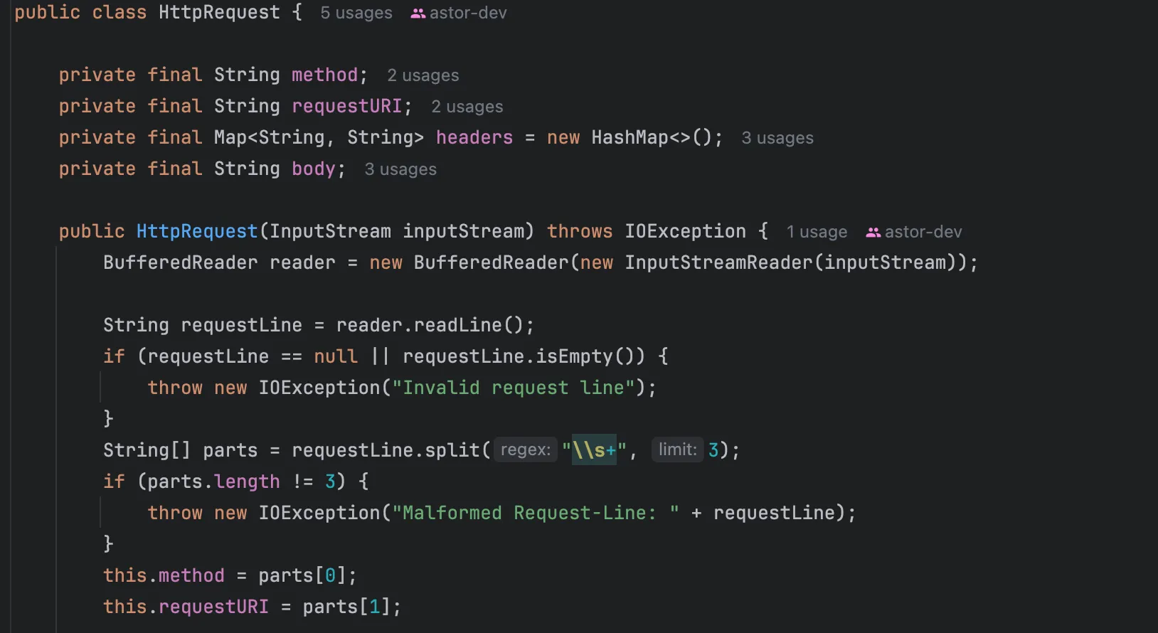 먼저 소켓에서 InputStream을 받아서 Http요청으로 파싱해야합니다.
